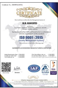 M.M.Associates is giving services from developing artwork designs to delivering the finished goods. We have got almost all the RMG accessories manufacturing units with superior quality machineries.